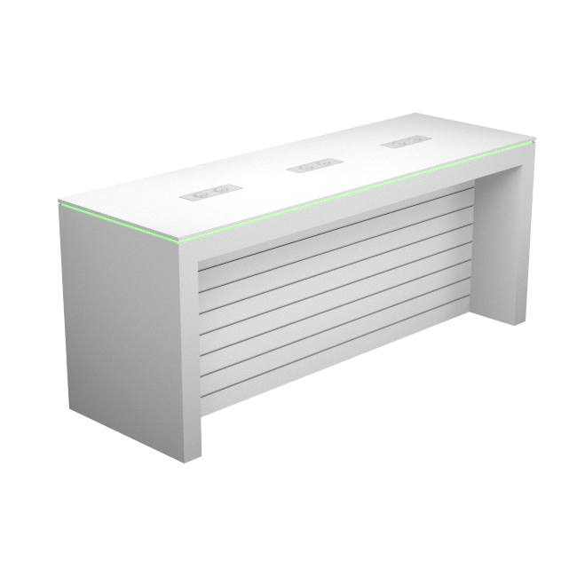 Display table with rgb led lighting_2400mm w/slatpanel back